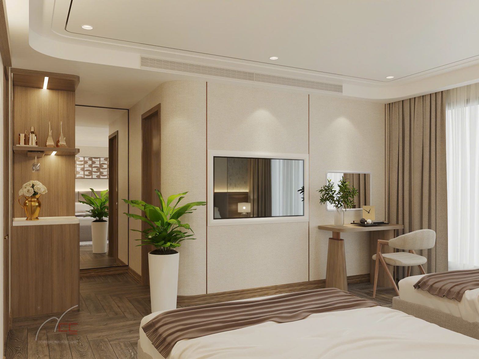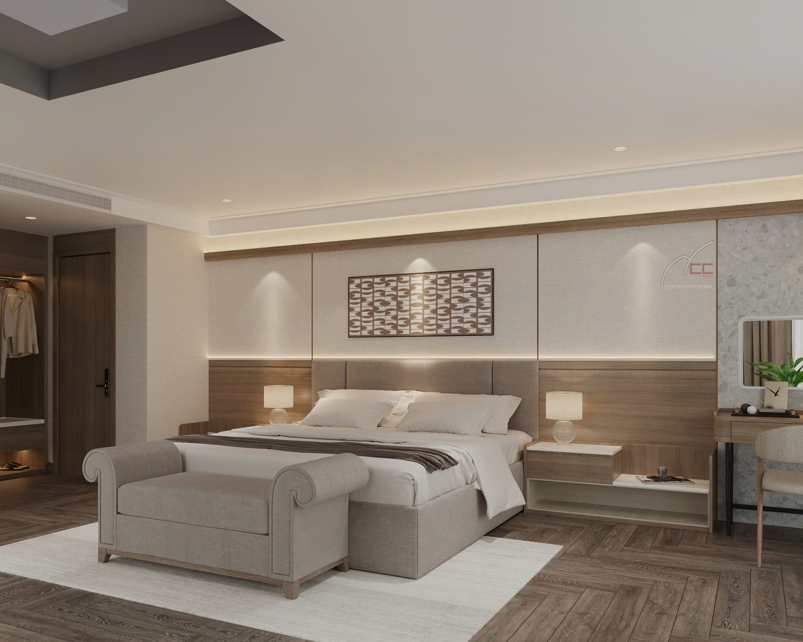Highlights:This suite is designed with floor-to-ceiling glass walls on two sides, offering a stunning 180-degree panoramic view of Lan Ha Bay that can be admired right from your bed